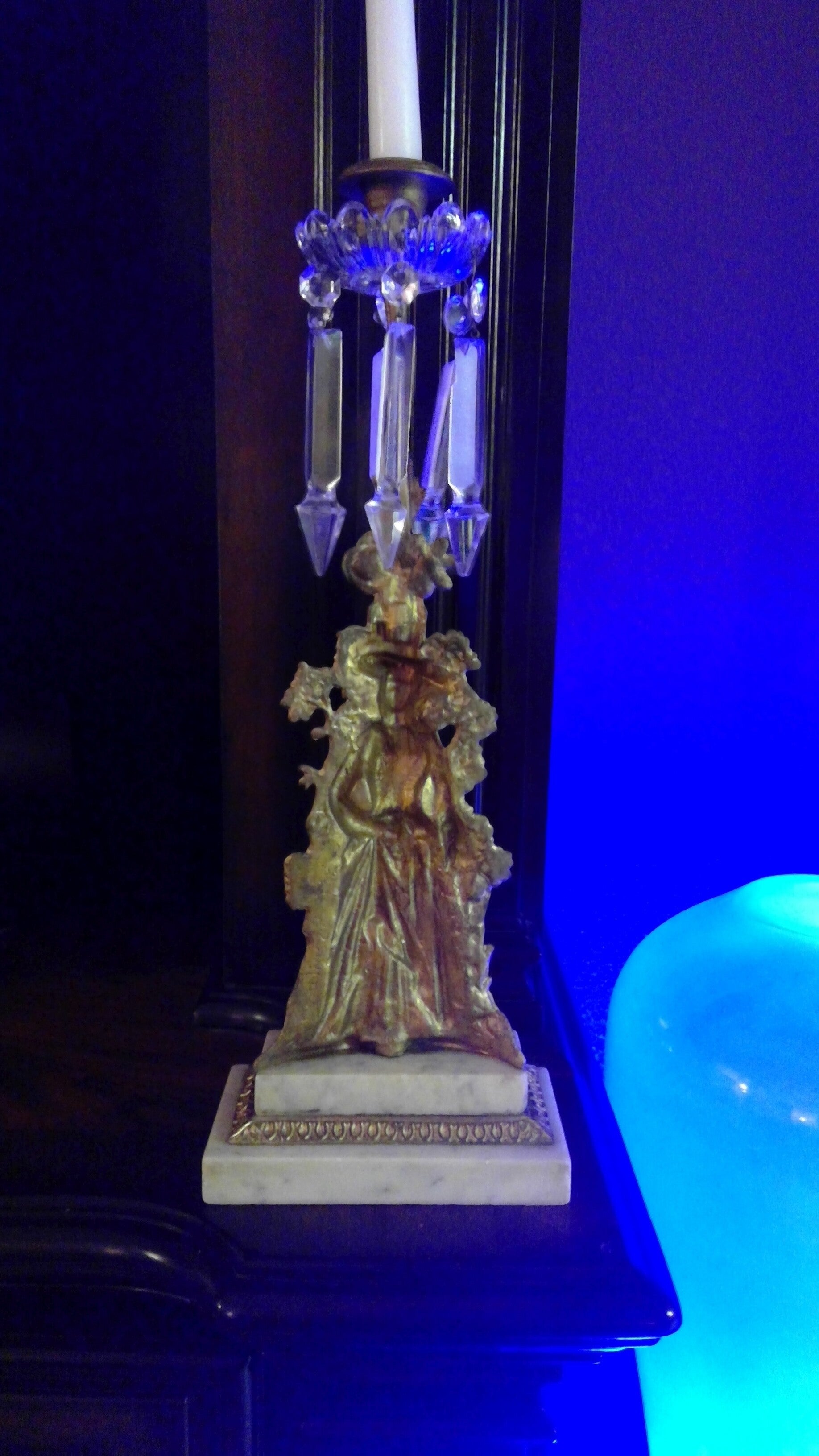 C. 1840's Cornelius and Co Cast Brass & Marble Girandole Candlesticks
